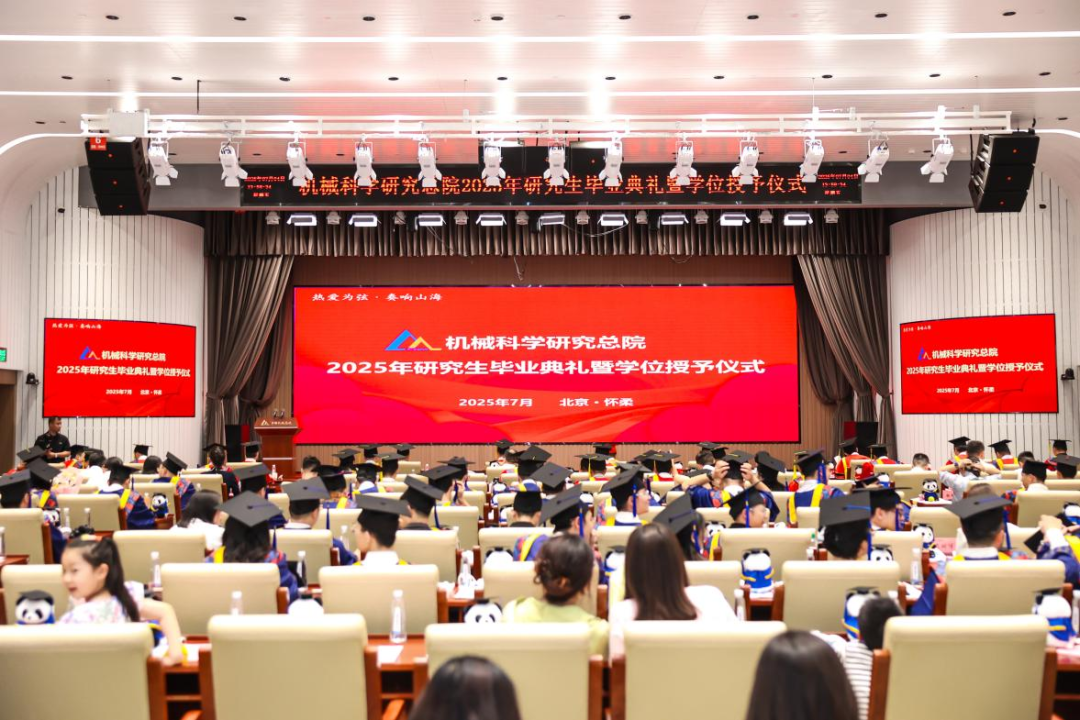 機(jī)械總院學(xué)位評定委員會主席、集團(tuán)黨委書記、董事長王德成,集團(tuán)黨委副書記、總經(jīng)理孟祥宇,集團(tuán)黨委副書記、董事李玉鑫,集團(tuán)黨委委員、副總經(jīng)理王宇,機(jī)械總院學(xué)位評定委員會副主席、集團(tuán)副總經(jīng)理李愛國,集團(tuán)副總經(jīng)理姜超出席典禮,機(jī)械總院學(xué)位評定委員會委員、京內(nèi)外各二級單位領(lǐng)導(dǎo)、導(dǎo)師代表、研究生管理部門負(fù)責(zé)人、2025屆畢業(yè)生及家屬共計190余人齊聚一堂,共同見證這一重要時刻。典禮由機(jī)械總院學(xué)位評定委員會秘書長、研究生院副院長邊翊主持。