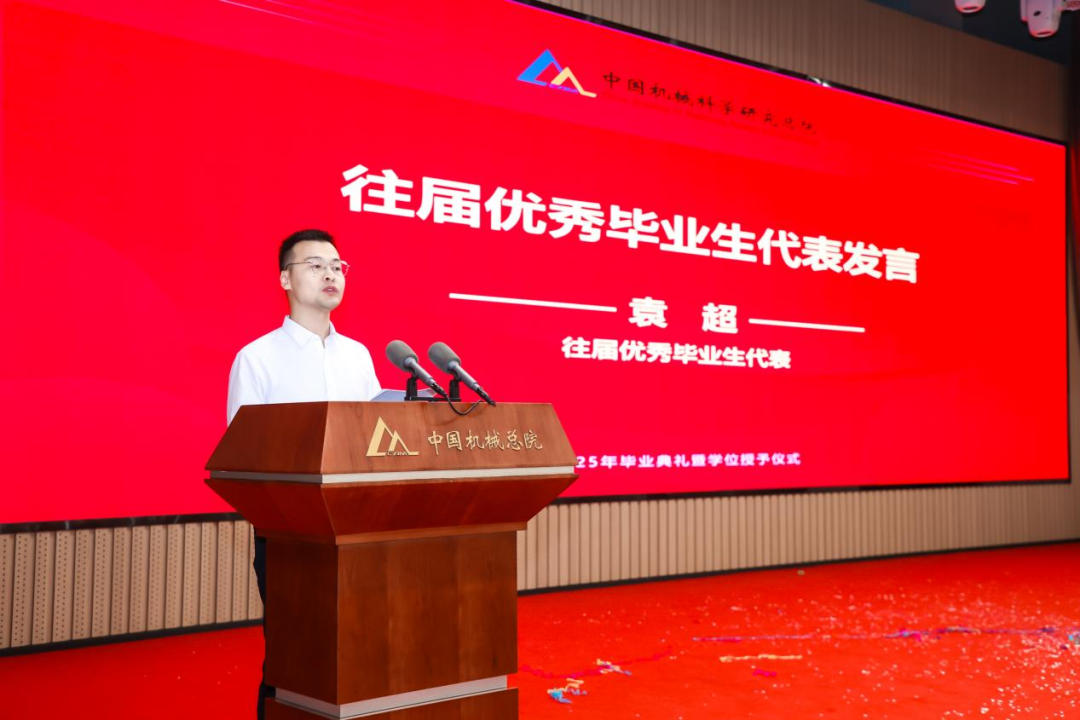 往屆優(yōu)秀畢業(yè)生代表袁超分享留院工作以來(lái)的科研經(jīng)歷與成長(zhǎng),鼓勵(lì)學(xué)弟學(xué)妹們“以‘敢為人先’為刃,在工業(yè)母機(jī)、工業(yè)軟件的賽道上破浪前行;以‘開(kāi)拓創(chuàng)新’為炬,為中國(guó)制造業(yè)的高質(zhì)量發(fā)展點(diǎn)燃燎原星火?!?/p>