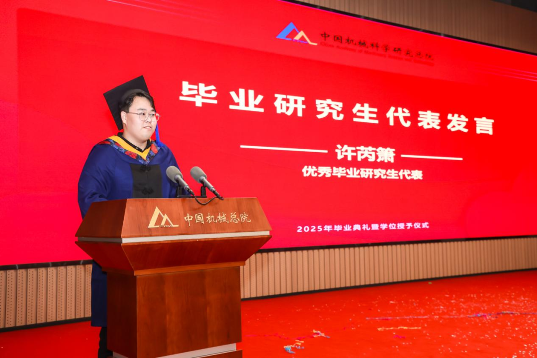李?lèi)?ài)國(guó)宣讀了《機(jī)械科學(xué)研究總院2025屆畢業(yè)生學(xué)位授予決定》,王德成為每位畢業(yè)生撥穗正冠并頒發(fā)學(xué)位證書(shū)。