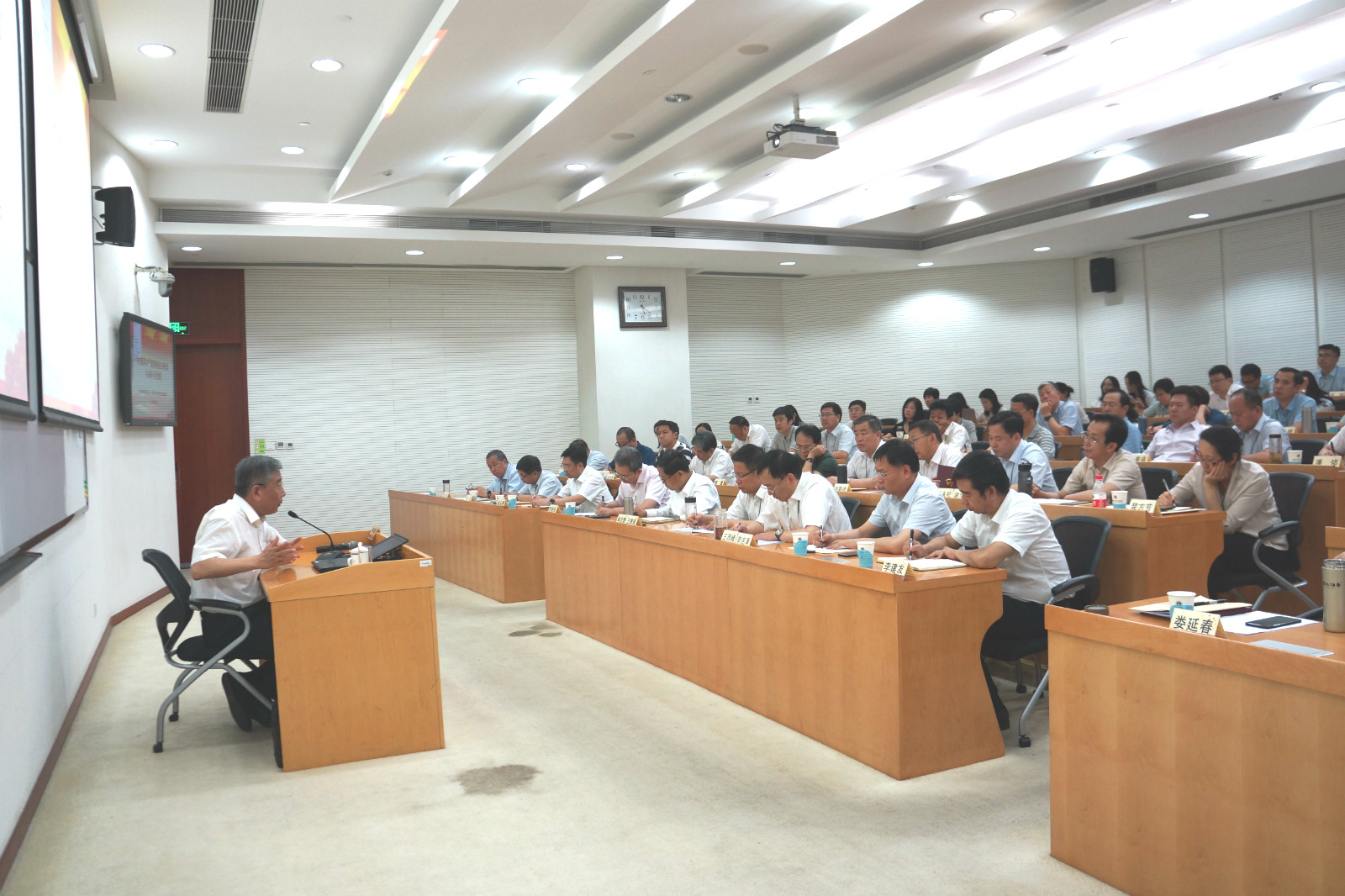 為扎實(shí)開展“不忘初心、牢記使命”主題教育,貫徹落實(shí)國資委黨委主題教育各項(xiàng)工作要求,6月10日至6月28日,集團(tuán)黨委在中央黨校(國家行政學(xué)院)舉辦了“不忘初心、牢記使命”主題教育領(lǐng)導(dǎo)干部專題培訓(xùn)班。培訓(xùn)班分兩期,每期5天,集團(tuán)領(lǐng)導(dǎo)班子成員、二級單位班子成員、董監(jiān)高人員、黨群人事部門負(fù)責(zé)人以及總部中層以上領(lǐng)導(dǎo)干部共計(jì)140余人參加了培訓(xùn)。黨委書記、董事長、總經(jīng)理王德成主持了開班式。